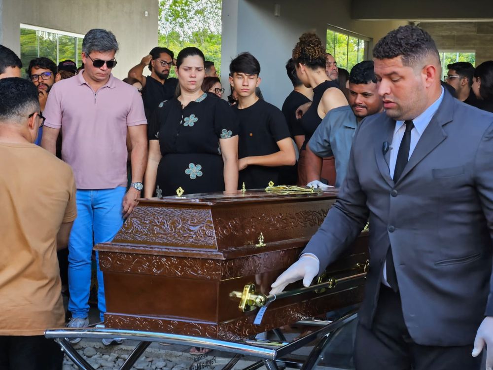 Esquife com o corpo de Bruno Monteiro deixa a Capela 2 do Memorial Maceió para sepultamento