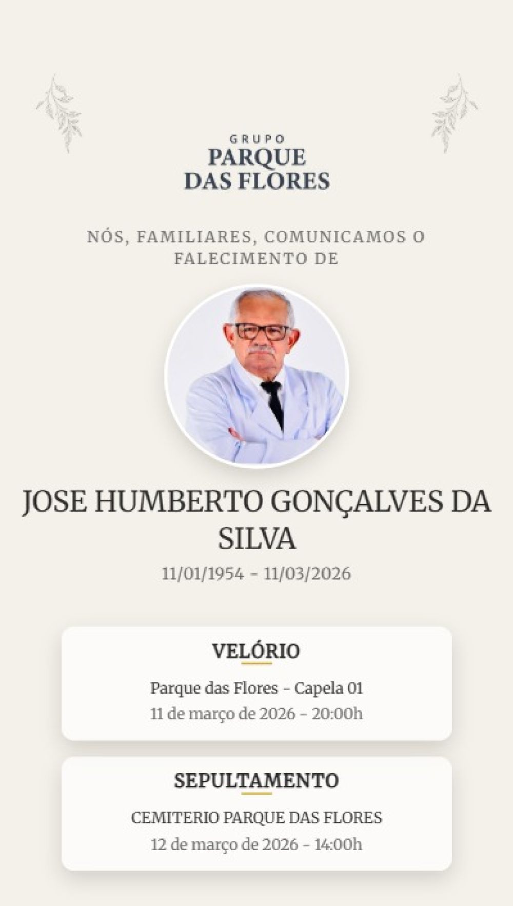 Dr Beto - será sepultado no Parque das Flores nesta quinta-feira,12