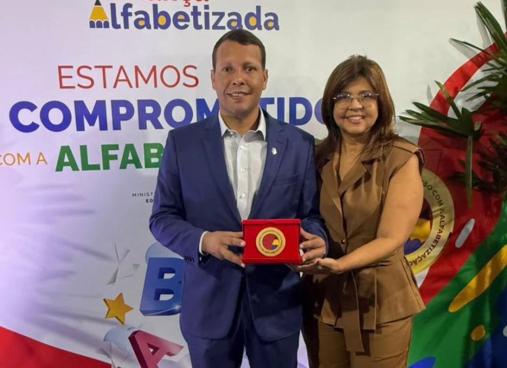 O ex-prefeito, Paulo Roberto de Araújo, Neno, acompanhou a prefeita, Ângela Vanessa e a vice-prefeita, Ravena Valença, para receber em Brasília-DF, o selo Compromisso com a Alfabetização em nível nacional. Com eles o professor Ricardo e a...